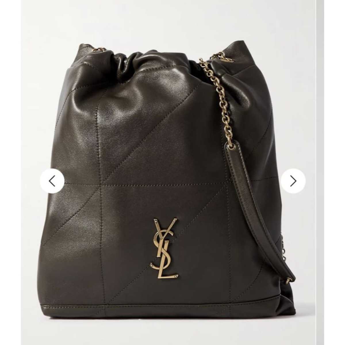 Borsa Saint Laurent Jamie bucket in pelle morbida nera trapuntata con logo YSL monogramma dorato e chiusura a coulisse.
