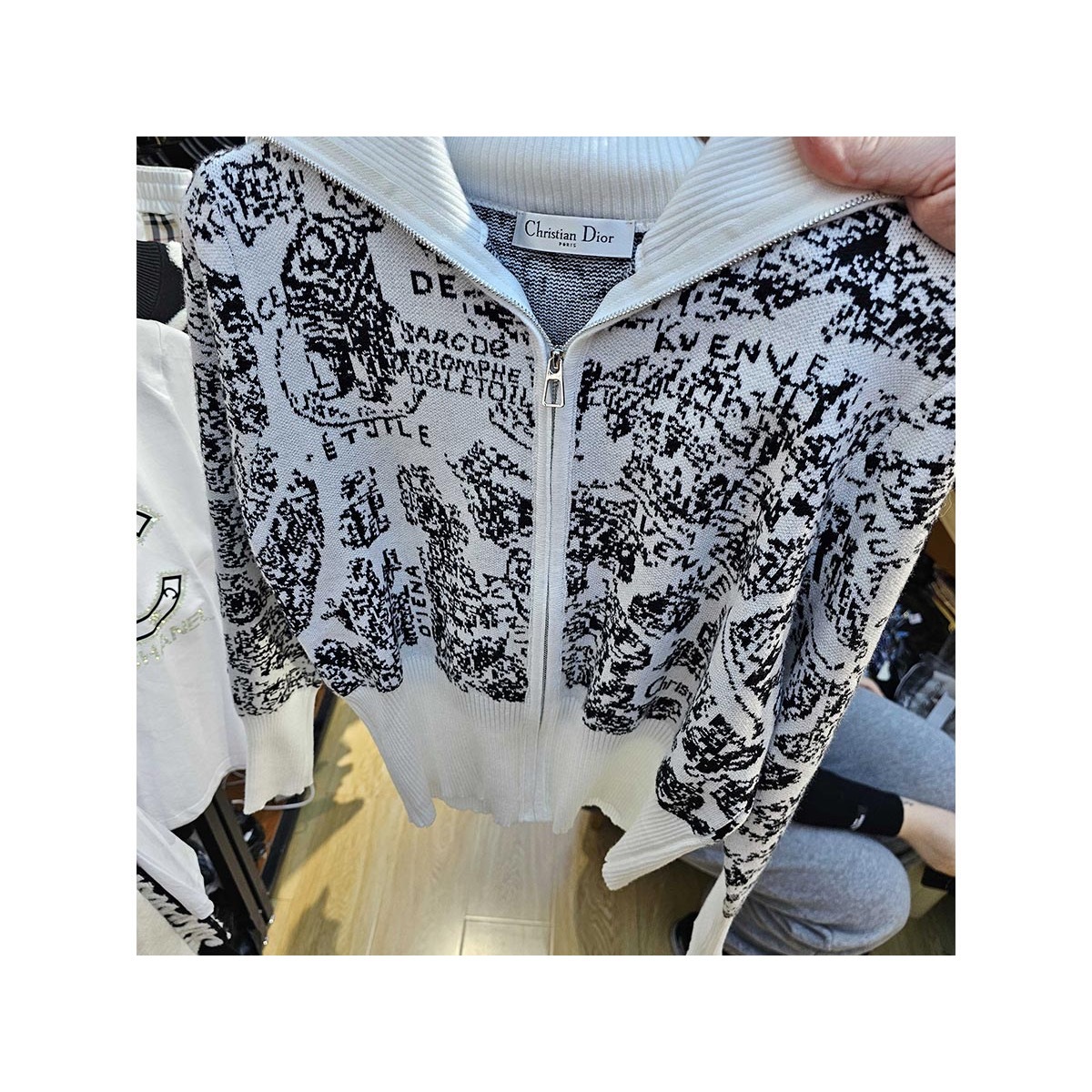 Cardigan Dior con zip e stampa mappa Christian Dior bianco/nero.
