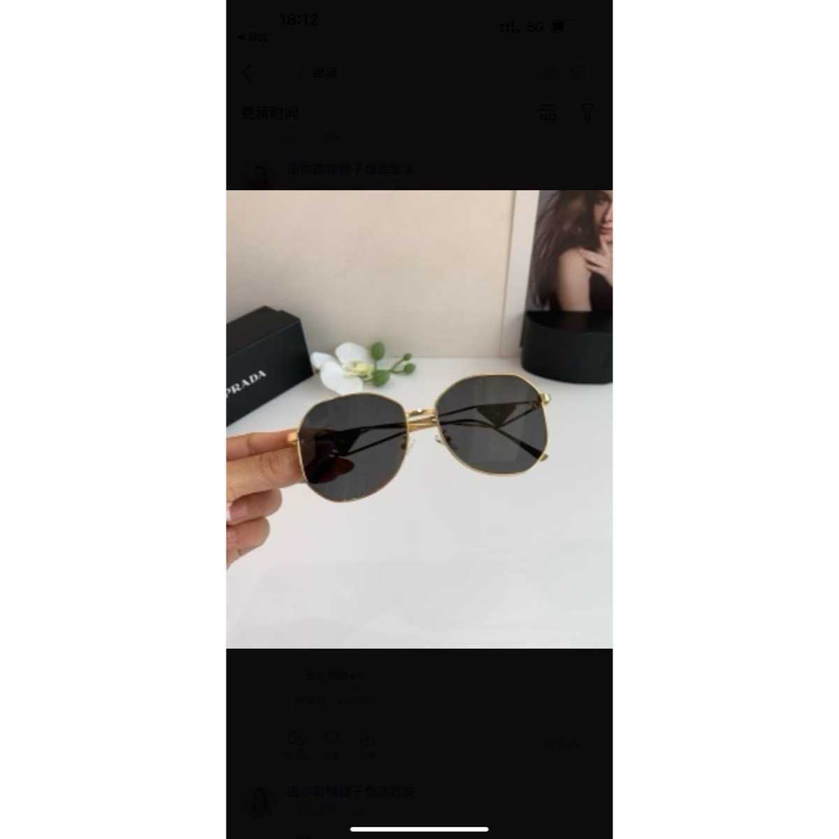 Occhiali da sole Prada con montatura esagonale/rotonda in metallo dorato e lenti scure.