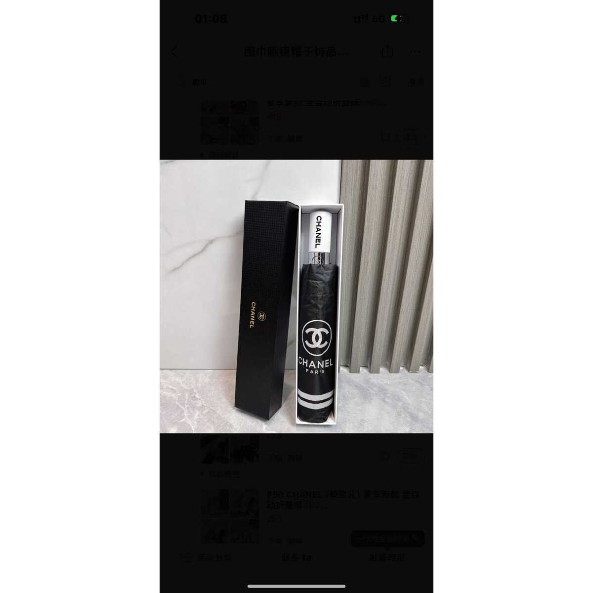 Ombrello Chanel con scritta CHANEL PARIS. Disponibile in nero e bianco. Con box.