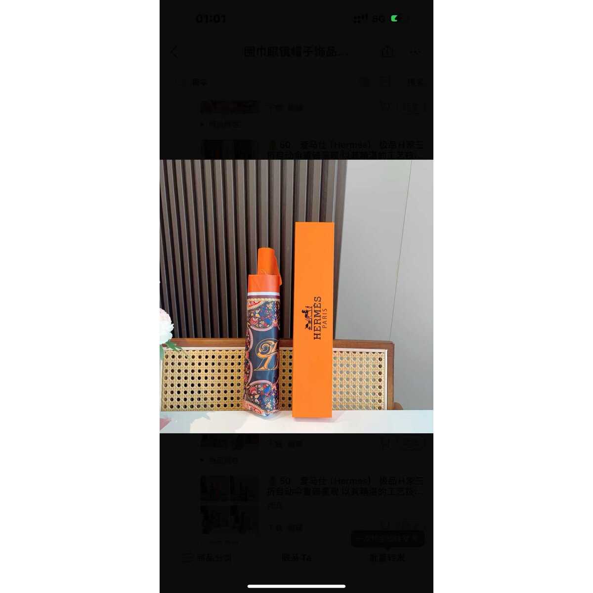 Ombrello Hermes con stampa paisley/floreale multicolor. Con box arancione.
