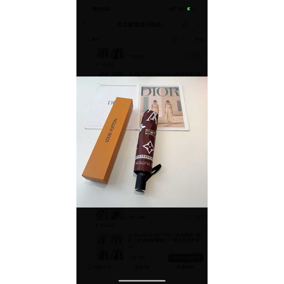 Ombrello Louis Vuitton con personaggio Vivienne e fiori. Disponibile in nero e marrone. Con box arancione.