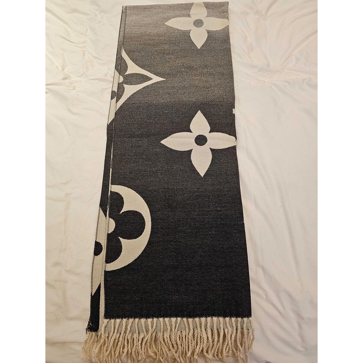 Plaid Louis Vuitton monogram grande nero/bianco con frange.