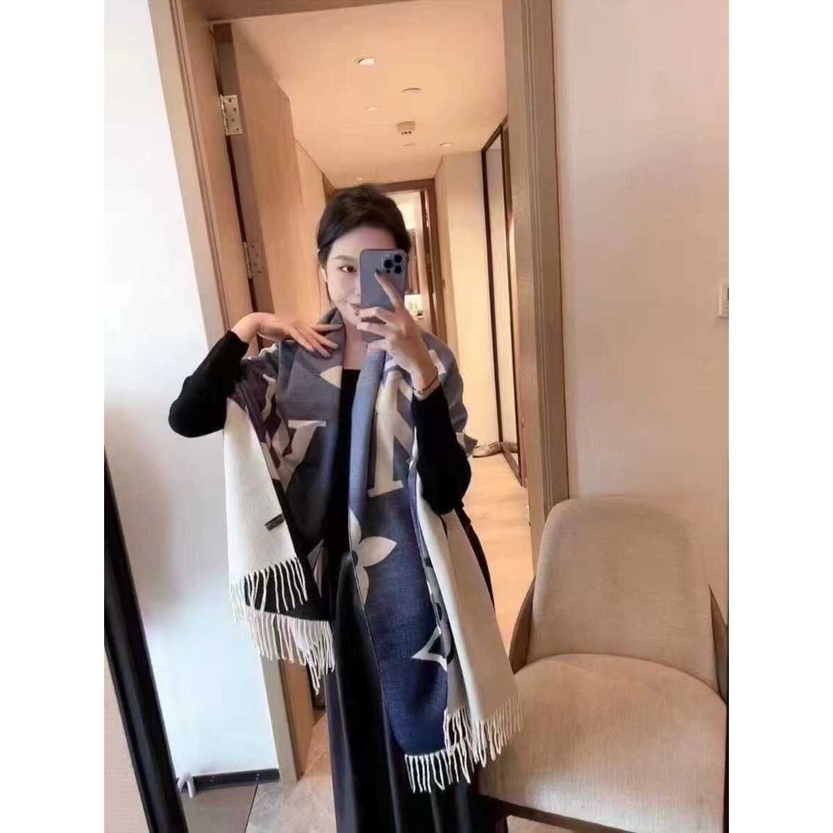 Sciarpa Louis Vuitton Monogram Multicolor con frange. Disponibile in beige/turchese, grigio/multicolor, rosa/lilla, nero/multicolor.